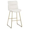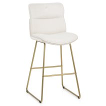 Questo sgabello risulta essere morbido al tatto e con una seduta realizzata in un lussuoso bouclé. SI aggiunge il comfort dell’imbottitura realizzata con una confortevole schiuma spessa. L'alto schienale retrostante propone ulteriori dettagli: una cucitura al centro e una sagomatura unica nella parte posteriore. Tutte queste qualità si uniscono in sinergia per aggiungere un tocco di carattere contemporaneo a questo già splendido sgabello. Le gambe a spigolo vivo costituiscono la struttura in metallo dorato spazzolato, che si assottiglia a partire dalla seduta per garantire stabilità e ma anche un design piacevole. Ci sono delle barre di rinforzo anteriori e posteriori a unirle: in particolare la barra anteriore è posizionata a un'altezza perfetta per sostenere i piedi. La base delle gambe è dotata di quattro robuste protezioni per proteggere il pavimento.